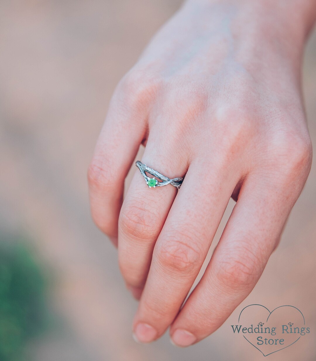 Unique Dainty Branch Engagement Ring With Emerald Tiny Sterling Silver Ring Emerald Tree Bark Ring Birthstone Engagement Ring Gift Ring Etsy Canada