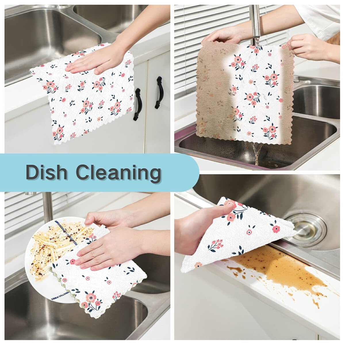 Kitchen Towels Cute Floral Pattern Reusable 6 Pack Absorbent Dish Towels For Window Panes Kitchen Accessories Amazon De Home Kitchen